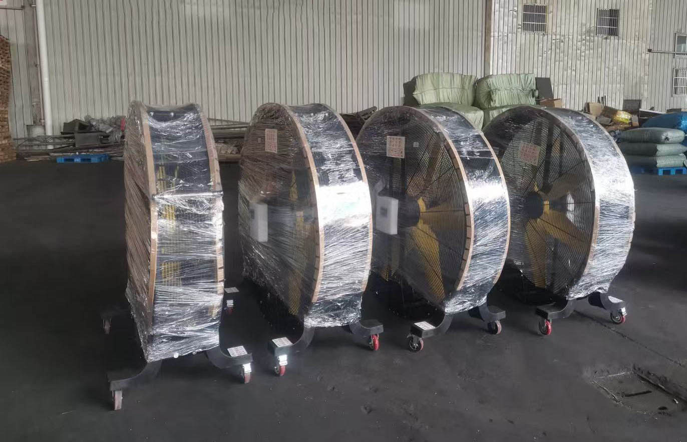 2. مروحة أرضية محمولة وسهلة النقل مزودة بأربع عجلات، ومرنة لتناسب ظروف الموقع.